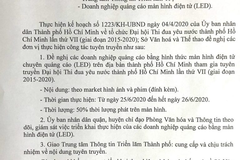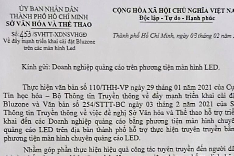 Sở Văn Hóa Tp.HCM vừa gửi OOHClub văn bản yêu cầu LED cổ động chống…