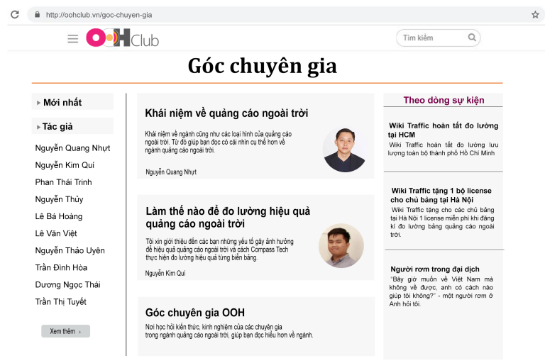 Câu lạc bộ quảng cáo ngoài trời (OOHclub) giới thiệu “góc chuyên gia” trên website…
