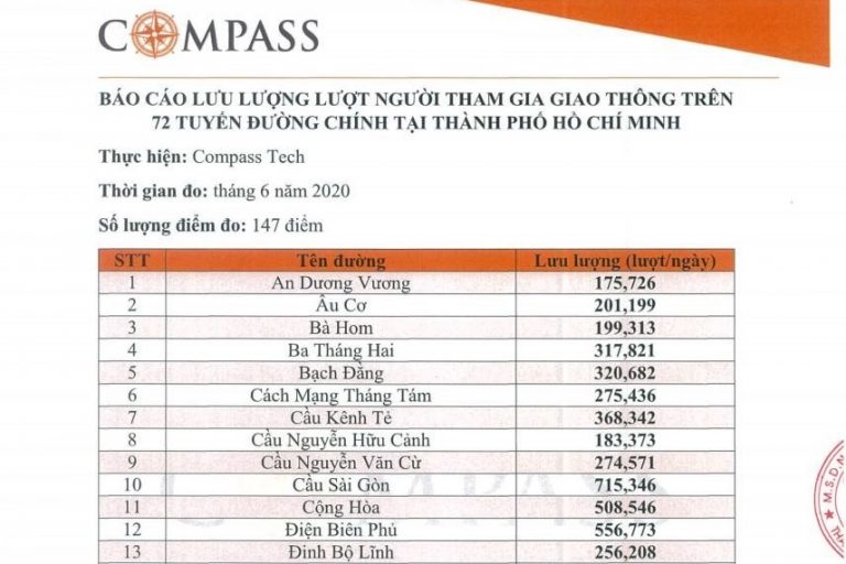Compass Tech công bố các số liệu lưu lượng traffic của toàn bộ tuyến đường…