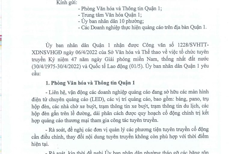 Ủy ban nhân dân Quận 1 tổ chức tuyên truyền Kỷ niệm 47 năm ngày…