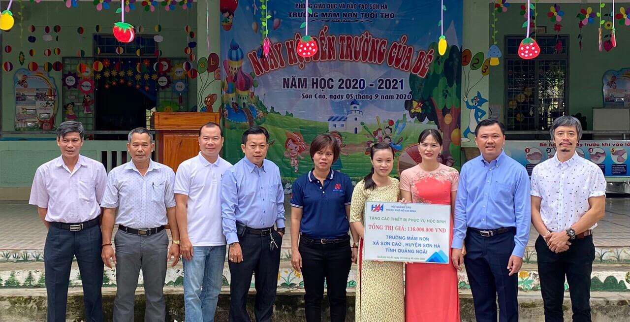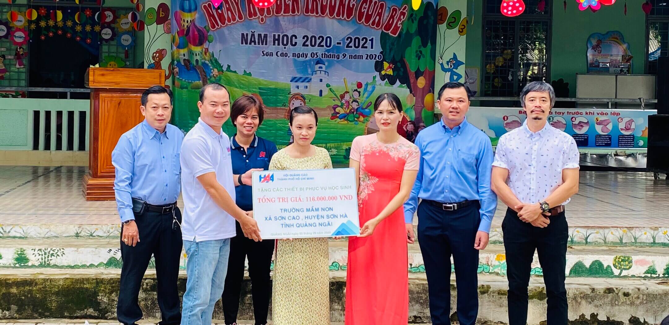 Vào ngày 5/9 vừa qua, hội quảng cáo TP.HCM (HAA) đã có mặt tại xã Sơn cao, huyện Sơn Hà, tỉnh Quảng Ngãi để trao những xuất quà đặc biệt cho trường vùng sâu, vùng xa nhân dịp ngày tựu trường.